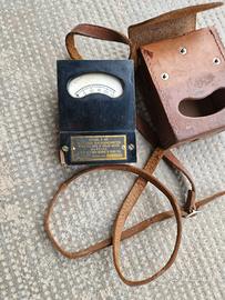 galvanometro anni 40 con custodia in pelle. non credo sia funzionante. piccola crepa su un lato