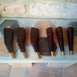 Primo set prime 3 foto: coppia di gambe in legno nero lucido con finali in ottone modellato a foglia - Altezza cm 42,5 - Euro 50.