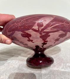 Coppa firmata Le Verre Francais in pasta di vetro trattata agli ossidi, decorata a cammeo e rifinita alla piccola ruota, di gusto art deco.