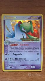 Gardevoir ex. Carta dei Pokemon originale edizione italiana. Serie: EX Tempesta di Sabbia. Numero: 96/100. Tipo: Psico. 150 PS. Stampata intorno al 2003-2004: illustrazione di Hikaru Koike. Carta EX o Ultra Rara con effetto olografico (brillante). Pezzo da collezione, vintage. In buone condizioni, con alcune piegature e segni su angoli e bordi. Prezzo trattabile