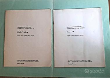 1) GARIBALDI ARTE E STORIA - Comitato Nazionale per le manifestazioni culturali per il centenario della morte di Giuseppe Garibaldi, Scala Editore, Firenze, 1982. Due fascicoli, 19x22 cm, che in 72 slides complessive delineano Garibaldi attraverso l'arte e documenti storici. Ciascun fascicolo contiene:
