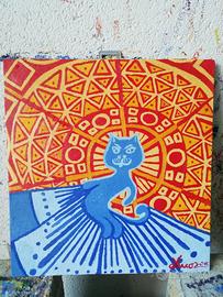 Quadretti di gatti astratti dipinti a mano a olio su tavola di legno 22x22