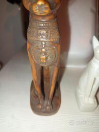 Due Bellissimi esemplari di gatto egiziano, come da foto. Quello marrone è alto 18 cm e come potete vedere dalle foto è con scritte e simboli,intarsiati in antico Egitto a rilievo. Quello in marmo bianco è alto 12 cm e non ha nessun simbolo,ma è di pregiata fattura. Sono inseparabili! Facevano parte di una collezione di gatti,ma di tutt' altro genere.