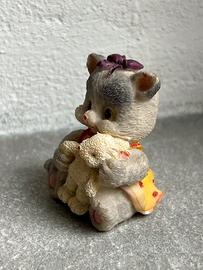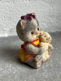 Deliziosa figurina in resina raffigurante una gattina grigia seduta, realizzata con cura e dipinta a mano.
