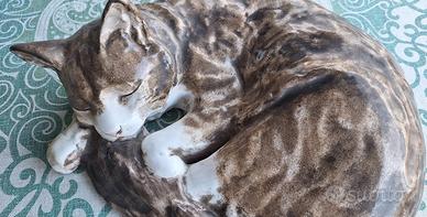 bellissimo gatto che dorme in porcellana smaltata, fatto da G. Guastalla di Milano, molto realistico, in perfetto stato