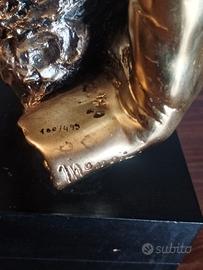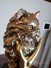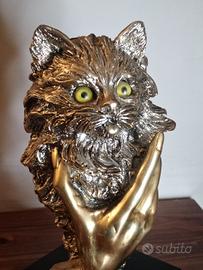 Celeberrima scultura in bronzo "Gatto con Mano" di Costanzo Mongini anni '80, Firmata e Numerata come pezzo 180/499. Opera pluribattuta in aste italiane e internazionali. Non aggiungo nulla. La scultura e' alta 38 cm. Con il basamento ligneo e 30 cm. Senza basamento. E' Larga 15 cm. Al basamento. Il basamento misura 15x15x8. Pesa 5,6 Kg.