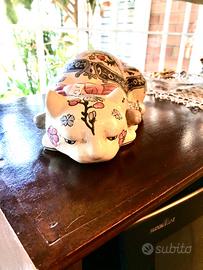 Gatto di porcellana giapponese Imari, tutto dipinto a mano con motivi floreali, in perfette condizioni con marcatura di provenienza sulla base. Lunghezza 27cm, altezza 13cm