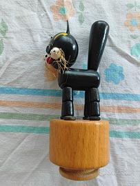 Vecchio gioco del gatto tutto in legno,con elastici, credo anni 60. Basta premere il pulsante che ha sotto la base per fargli assumere qualsiasi posizione. Perfettamente funzionante e molto bello. Articolo raro.