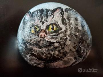 Gattone peloso dipinto su sasso di mare