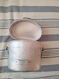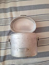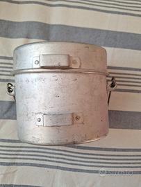 Gavetta militare italiana modello 1931, ottimo stato di consevazione (forse mai usata - considerato che non presenta graffi da usura all'interno). Questo tipo di gavetta nata negli anni '30 per sostituire la vecchia gavetta in metallo stagnato rimase in uso fino agli anni '50 (sostituita poi dal modello 54 - a tre pezzi).
