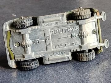 Modello Vintage (obsoleto) anni '70 Gaz 69 AM in scala 1:43 della Politoys E 29 in metallo pressofuso, con fondo anche in metallo.