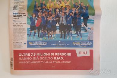 Storica edizione della Gazzetta dello Sport interamente dedicata alla vittoria del Campionato Europeo di calcio da parte della nazionale italiana nel 2021.