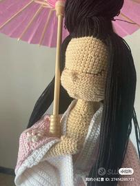 Bellissima bambola Geisha realizzata all'uncinetto. Un pezzo unico, perfetto per collezionisti o amanti dell'artigianato.