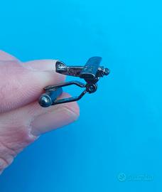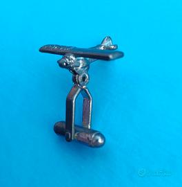 Coppia di splendidi gemelli da pilota realizzati con miniatura di aeroplano monoplano ad elica anni '30 sani in tutto