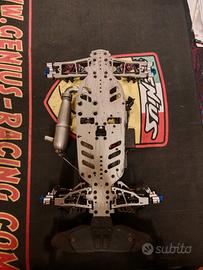 Vendo Genius GTC8.23 completamente revisionata. La macchina presenta spine dei cardani nuove, bicchieri nuovi, spessori braccetti nuovi, piastra D nuova, pignoncini coppie coniche nuovi, unidirezionale e palo del cambio con appena 30 minuti di utilizzo. La macchina viene venduta con le molle originali degli ammortizzatori (bianche), senza motore, servi e parte sotto del salvaservo in alluminio. La macchina è stata sempre tenuta maniacalmente ed usata solo per fare competizione con ripetuta manutenzione. In più cedo il set completo di braccetti in plastica nuovi mai montati e vari ricambi usati.
