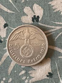 Moneta in argerto 900. Germania terzo Reich 5 Reich smark. Anno 1930 peso 13,88grammi diametro 29 mm spesdore 2,5 mm.