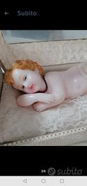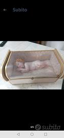 SCULTURA in ceroplastica raffigurante "Bambinello dormiente" entro teca con carillon da revisionare.