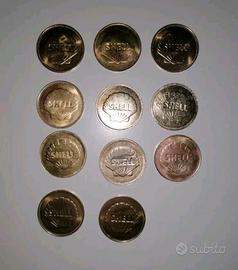 Lotto di 11 gettoni Shell, di seguito la lista: