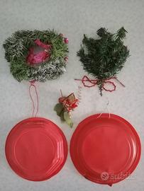 Due Piatti rossi di plastica, da appendere, con immagine della Natività colorata e incollata