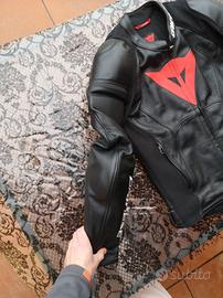 Vendo bellissima giacca da moto da uomo in pelle marca dainese taglia 50 colore nero e rosso. La giacca è in perfette condizioni. 2 tasche esterne più 3 interne, oltre alla tasca per inserire il paraschiena. Predisposizione per mettere le protezioni del petto e il paraschiena. Ha la cerniera per essere allacciata ai pantaloni e fare da tuta divisibile. Regolabile in vita. 2 tasche laterali per la regolazione dell'aria. Tutti i prezzi indicati (210euro) sono COMPRENSIVI di spese di spedizione ma non sono trattabili. Tra i miei annunci trovate altre giacche di varie taglie e marche. Collezione altro.