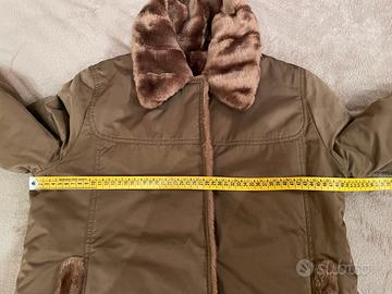 Bellissima e originale giacca da donna in ecopelliccia color marrone/ miele, grandi bottoni automatici a scomparsa. Giacca reversibile, interno color verde militare con risvolti in ecopelliccia. Molto versatile perché nella versione ecopelliccia risulta più elegante mentre dal lato in tessuto più sportiva. Nessuna etichetta. Taglia M/L, misure in foto.