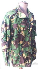 N77) Giacca da combattimento in tipico mimetismo DPM del Royal British Army del 1999. E' stata poco usata, è in condizioni veramente molto buone con solo qualche leggera macchia bianca vicino al tascone destro. Etichetta interna con tutte le specifiche presente, taglia Nato 6070/9505 che corrisponde ad una statura attorno a 1.70 cm. ed un petto attorno ai 104 cm. (nessun impegno in merito alle taglie).
