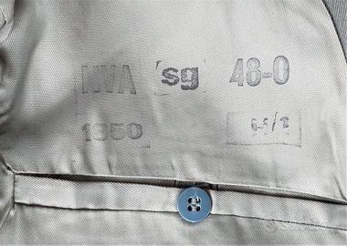 N3) Ottimo completo composto da giacca e pantaloni larghi della Aviazione della ex DDR, con bordino al colletto e sulle maniche di colore azzurro. Non è mai stata usata, neanche mai mostreggiata. E' in condizioni molto buone, ancora con le etichette originali. Taglia riportata 48, presente il marchio sartoriale sia sulla giacca che sui pantaloni. Perfetta anche per ricostruzione divisa tedesca 2gm.