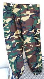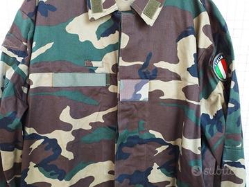 N147) Ottima uniforme vintage non più in uso SCBT Servizio e Combattimento con mimetismo woodland CC dotazione Paracadutisti del Rgt. Tuscania (oltre che Rgt. Cacciatori), composta da giacca e pantaloni (nessun fregio presente). Mai usati, nuovi di magazzino. Taglia militare 5° (54). Presenti le stessi etichette interne sia sulla giacca che sui pantaloni con la taglia 54 , l'anno del contratto 1998 ed il produttore Cotoniere Lombarde.