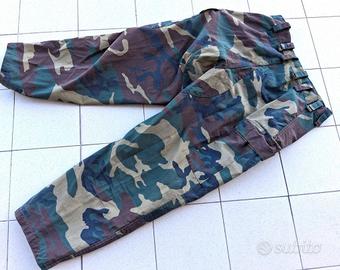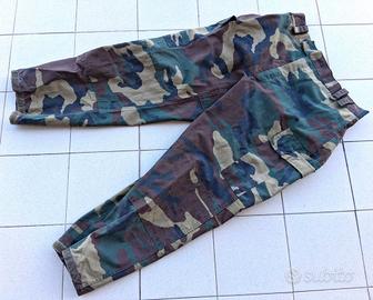 RICHIEDERE FOTO SUPPLEMENTARI - N884) Veramente raro completo composto da giacca e pantaloni mimetici da combattimento nel particolare e specifico mimetismo tipo woodland in dotazione agli Incursori ed alle Forze Speciali - GRACO - dell' E.I. del 1988 (molto differenti da quelle standard dell'Esercito per il taglio, il tessuto, i materiali e la colorazione). L'uniforme è stata pochissimo usata, è in ottimo stato. La taglia della giacca è una 4° militare (petto cm. 58 da ascella ad ascella - manica cm. 66 - spalle cm. 50 - lunghezza totale da colletto parte superiore a fondoschiena cm. 79 per una altezza da 168 a 171 cm. , e i pantaloni ovviamente identici sono una 5° militare (girovita cm. 80 circa) per una altezza da 172 a 172 cm. Potrebbe essere quindi tra la medium e la large ma senza nessun impegno su taglie, vestibilità ecc. la cedo esclusivamente come oggetto da collezione). I pantaloni sono stati leggermente più lavati della giacca perchè molte volte venivano usati senza. Eccellente pezzo, è ormai impossibile trovarne di questo tipo perchè sono state distribuite in limitatissime quantità.