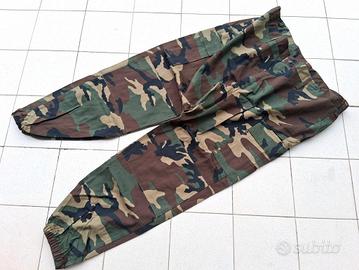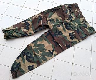 N814) Ottima uniforme vintage non più in uso SCBT Servizio e Combattimento con mimetismo woodland ex dotazione CC Paracadutisti del Rgt. Tuscania, composta da giacca e pantaloni (nessun fregio presente). Mai usati, nuovi di magazzino. Taglia militare 7° (58). Presenti le stessi etichette interne sia sulla giacca che sui pantaloni con la taglia 58 , l'anno del contratto 1996 ed le specifiche del produttore.