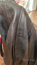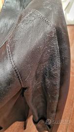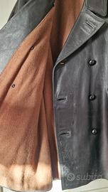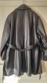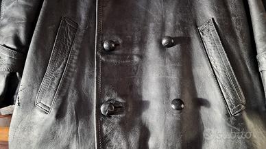 Giaccone in pelle / cuoio doppio petto ex dotazione forze di polizia radiomobile / motociclista anni '70 - '80 con cinta in vita fodera interna in lana marrone PREZZO TRATTABILE Due tasche esterne In buone condizioni, ha il suo aspetto vissuto e decisamente vintage, nessuna scucitura. Alcune abrasioni specie sulle spalle come mostrato in foto. Probabile taglia 46/48 Misure in cm: - spalle 46 - manica 61 - petto / ascelle 53 - lunghezza dal colletto 94 - lunghezza della cintura 133 Per uso motociclistico, rievocazioni e/o collezione