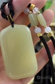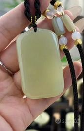 Giada di Hetian in materiale Qing Shui, con dimensioni di 50 x 30 mm, adatta sia per uomini che per donne. La qualità della giada è fine, lucente e trasparente, senza imperfezioni né crepe. Ha un aspetto elegante e un ottimo rapporto qualità-prezzo, ed è molto semplice e bella da indossare.