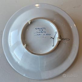 Piatto decorativo in ceramica umbra firmato Gialletti & Pimpinelli, dipinto interamente a mano.