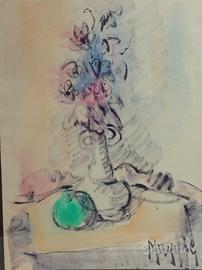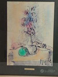 Giampietro Maggi (Milano 1934) - "Natura morta"- acquarello e pastello su carta. Firmato in basso a destra e targhetta con il nome dell'Artista in basso sul passepartout. In buone condizioni. Periodo anni '80. Misure: opera cm 24 x cm 33 in cornice di legno con vetro di cm 36,5 x cm 45,5. Pittore milanese, diplomato alla Scuola Superiore dell'Accademia di Brera, che si potrebbe definire "tradizionale" con alle spalle tantissime mostre personali e collettive, premi nazionali ed internazionali. Nella sua produzione rientrano molti personaggi e scorci di Milano, ma anche scene di figure e le nature morte rimandono sempre alla vita popolare e quotidiana. Per i suoi meriti artistici è stato nominato Cavaliere della Repubblica.