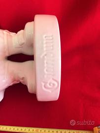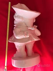 Grande manufatto in ceramica bianca della Caffarel con numero di serie 363 Caffarel. denominata Gianduia statua pubblicitaria dei gianduiotti della marca Caffarel gadget fornito ai rivenditori per pubblicità negli anni 90. In buono stato con piccoli segni del tempo come da foto base dia. 21 Altezza cm.48.