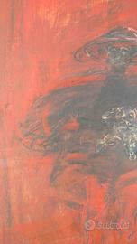 Gianfranco Bonetti 1947-2007. Gianfranco Bonetti Splendida Figura con cagnolino su sfondo rosso. Cm 54x73