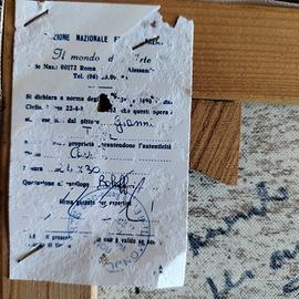 Il quadro è accompagnato da due autentiche e una dedica dell’artista alla Galleria “Il Mondo Dell’Arte”.
