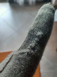 Guanti in lana grigio verde scuro, hanno circa 30 anni. In buone condizioni. Da segnalare solo una riparazione sul dito indice del guanto sinistro ( Vedi fotografia riparazione)