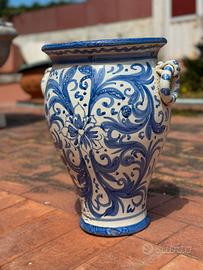 Giara in ceramica siciliana di Caltagirone Atico blu H 50cm, L 38cm. .