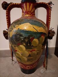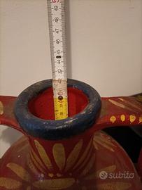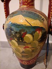Vecchio orcio, giara dipinta a mano di origine siciliana, con ancor elementi decorativi.