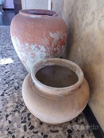 Tre giare antiche di varie misure, hanno un piccolo buco sul fondo, una mancante di una maniglia come da foto, da visionare sul posto in quanto fragili per spedizione, prezzo cadauna a scelta, o eventualmente da concordare per tutte e tre.