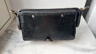 Giberna per bandoliera Carabinieri, modello 1891, in cuoio nero, all'interno in metallo.