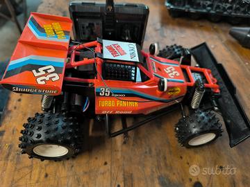 gig nikko turbo panther. ultima serie prodotta con paraurti rinforzato. usata con segni d'uso ma perfettamente funzionante. non presenta le solite rotture. gomme buone non crepate né deformate. oggetto privo di confezione. radiocomando, antenna e tubetto antenna trasparente inclusi. spedizione con imballaggio accurato.