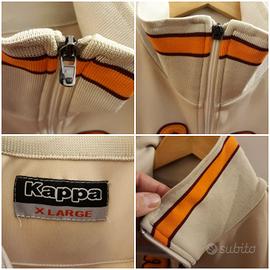 Gilet in poliestere della Roma marca Kappa made in Albania, tg XL (ascella 57 cm circa; altezza 73 cm circa). PRESENTA IN BASSO E DAVANTI A SX DEI LIEVI SEGNI/MACCHIE POCO VISIBILI CHE CON IL LAVAGGIO SONO STATE RIMOSSE PARZIALMENTE. LA LINGUETTA IN PLASTICA NERA DELLA CERNIERA LAMPO È ASSENTE, MA SI CHIUDE E SI APRE SENZA DIFFICOLTÀ (VEDASI DETTAGLI FOTO). Le scritte del club davanti sono ricamate in tessuto in rilievo e termosaldate. Il logo Kappa sul retro sotto il colletto è ricamato in rilievo in filo arancione con contorno bordeaux. Articolo poco usato è in ottime condizioni generali e ben conservato, nonostante i difetti descritti.