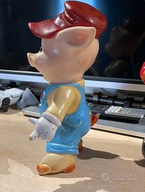 Vendesi porcellino “ gimmi” dei 3 porcellini disney originale. Giocattolo vintage in buone condizioni nonostante i 50 anni di età. Ha qualche sbiaditura di colore come in foto. Riporta il logo originale disney sul retro. Alto circa 30 cm. Materiale plastica.