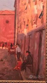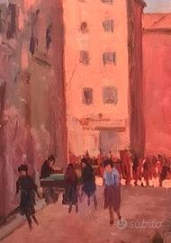 Gino Centoni Pittore Livornese Dipinto A Olio su tavola 40x30 (anni40') Soggetto livorno Antica Via della Coroncina piazza Cavallotti anni40' Corredato di prestigiosa cornice barocca dorata d'epoca