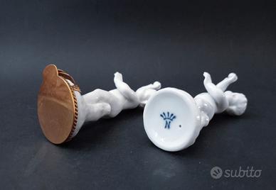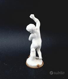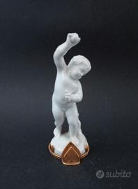 GINORI N Coronata BAMBINO Palla Putto PORCELLANA Statuina BASE METALLO DORATO
