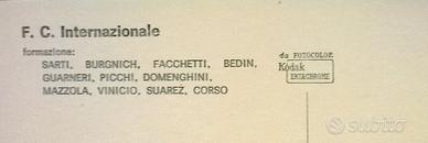 Vendo cartolina Inter formazione 1966/1967, non viaggiata in buone condizioni, lievi imperfezioni negli angoli ( come da foto ), misure cm 10 x 15 ca.