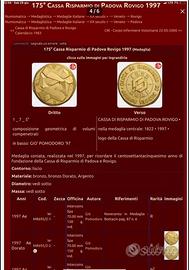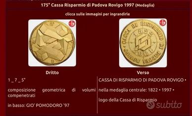 Gio Pomodoro Medaglia per i 175 anni della Banca Cassa di Risparmio Padova e Rovigo Diametro 75 mm peso 150 grammi Cell 3312630393