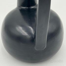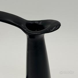 Raro vaso in ceramica nera bucchero, disegnato da Gio Ponti in collaborazione con Carlo Alberto Rossi negli anni Quaranta. L’opera si distingue per la sua linea scultorea e dinamica, con un manico ad arco pronunciato e un corpo levigato dalle superfici sinuose, tipiche della ricerca formale pontiana di quegli anni.